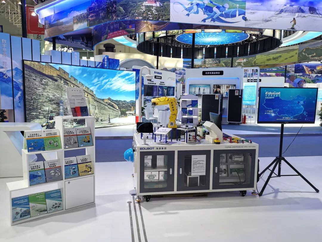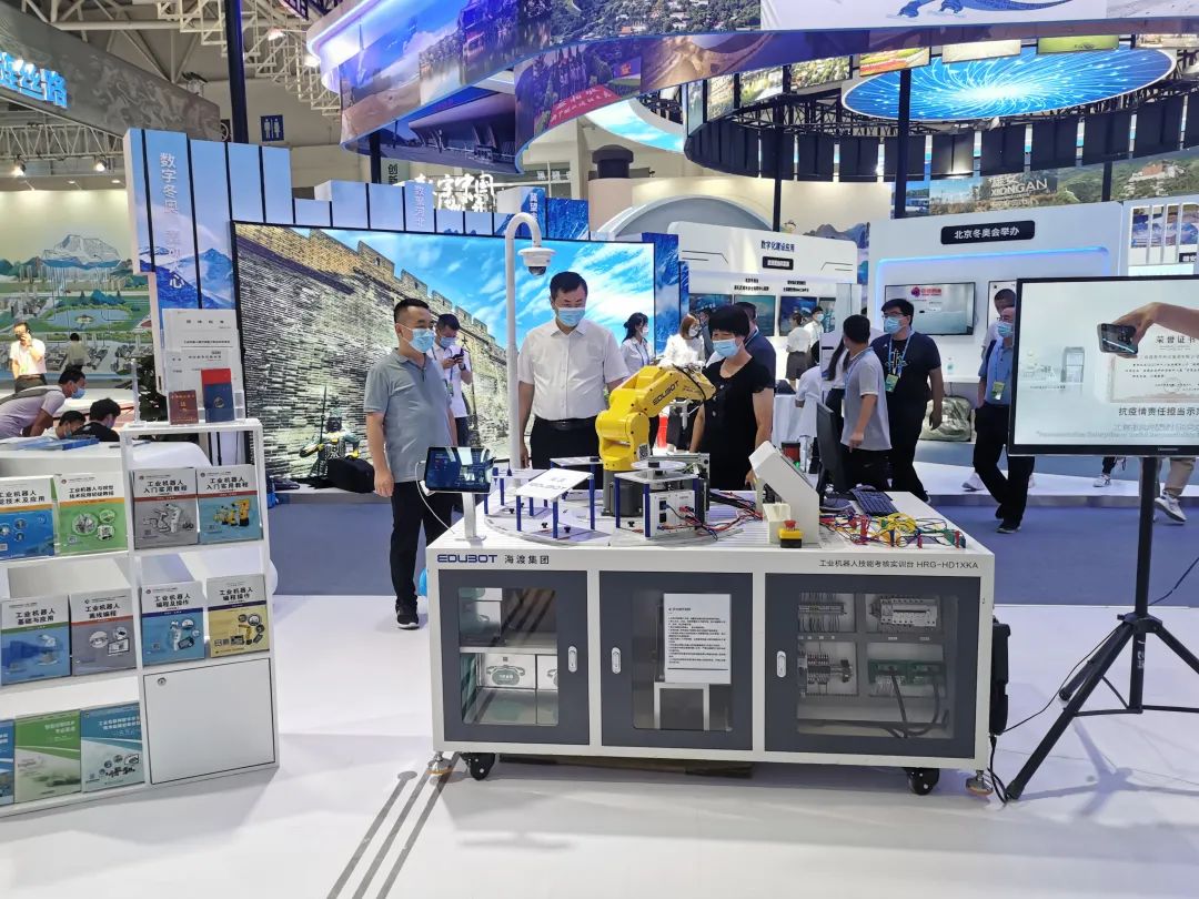 7月23日,第五届数字中国建设成果展览会在福州开幕 。海渡集团携工业机器人技能考核实训台、产教融合系列教材等创新项目亮相活动现场,多角度呈现先进制造业实训装备以及人才培养教学资源,展现全新的先进制造业人才培养体系。