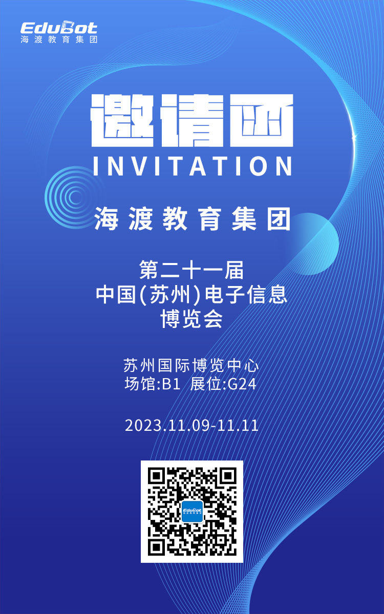 由国务院台湾事务办公室、江苏省人民政府主办的第21届中国(苏州)电子信息博览会将于2023年11月9日-11日在苏州国际博览中心举办。海渡教育集团携先进制造业系列教学产品亮相本届展会 ,集中展现在科教创新、人才培养等方面的成果,诚邀广大观众莅临B1展馆 G24 展位,现场参观洽谈。